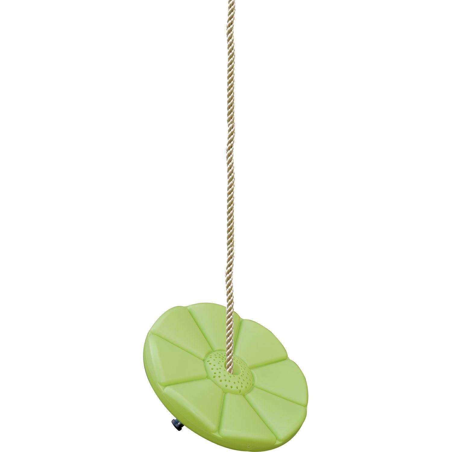 La balançoire disque pour aire de jeux peut s'adapter d'une hauteur de 1,9 à 2,5 m. L'assise et la corde sont traitées anti UV, ce qui vous permettra de les laisser dehors en toute sécurité.