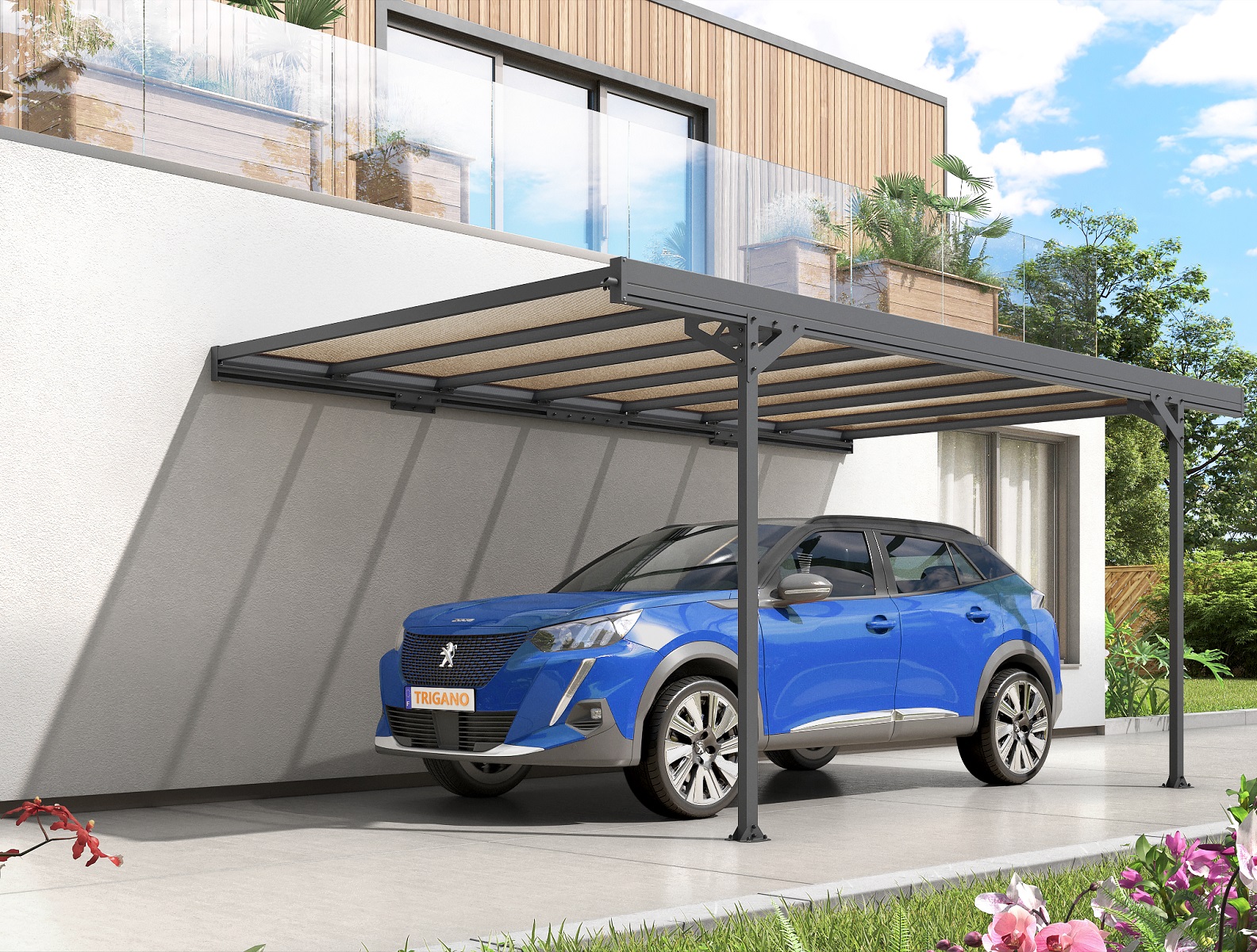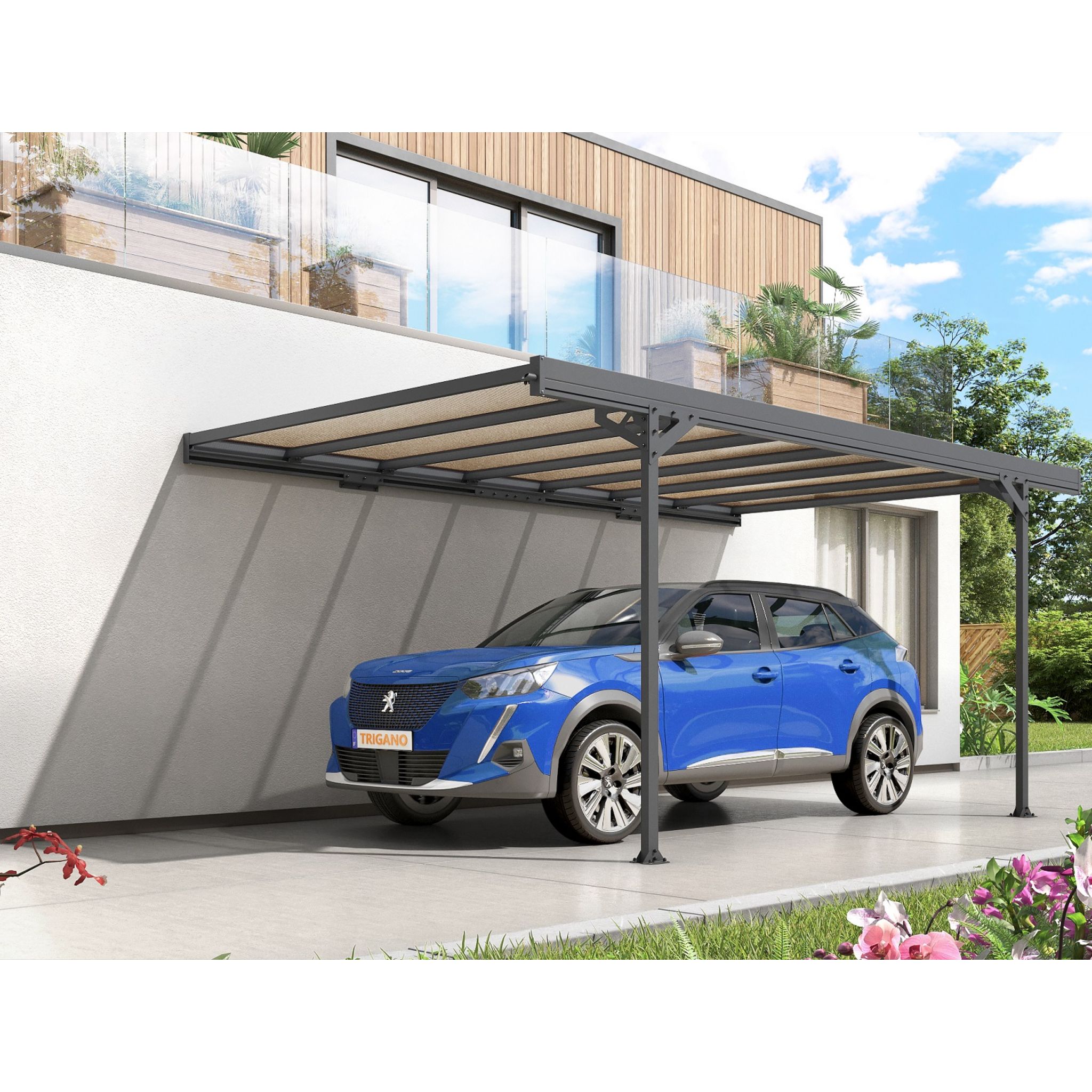 Carport métal adossé MISTRAL 15.45 m² aluminium et polycarbonate