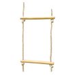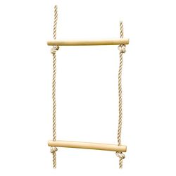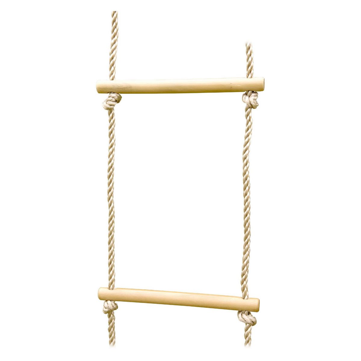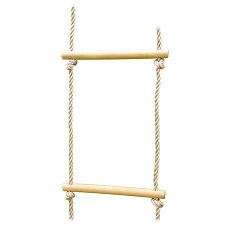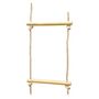 Echelle de corde pour portique 3,00/3,50m. Corde polypropylène, couleur chanvre et traitée anti-UV. Barreaux en bois de Hêtre sans nœuds, longueur 30cm, diamètre 2cm. Anneau de suspension métal.
