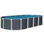 Piscine métal OSMOSE hors sol colori anthracite dimensions extérieures 6,40x3,90x1,32m (int. 6,10x3,60m, hauteur d'eau 1,10m) paroi 40/100e acier ondulé galvanisé à chaud, pré-laquée et peinte, poteaux verticaux acier galvanisé à chaud et laqués, margelles 18 cm, pré-découpe skimmer et buse de refoulement, liner 50/100e (42,5/100e) gris, traité anti-UV, soudé haute fréquence, tapis de sol, échelle de sécurité 1,40m, 2x4 marches avec plate-forme, acier galvanisé et laqué blanc, marches plastiques anti-dérapantes, filtre à sable 6m3/h, sable spécial filtration.