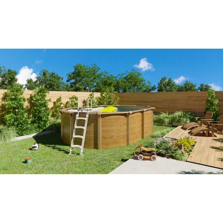 Piscine métal hors sol aspect bois 5,20 x 3,95 x 1,32 m - pi9570