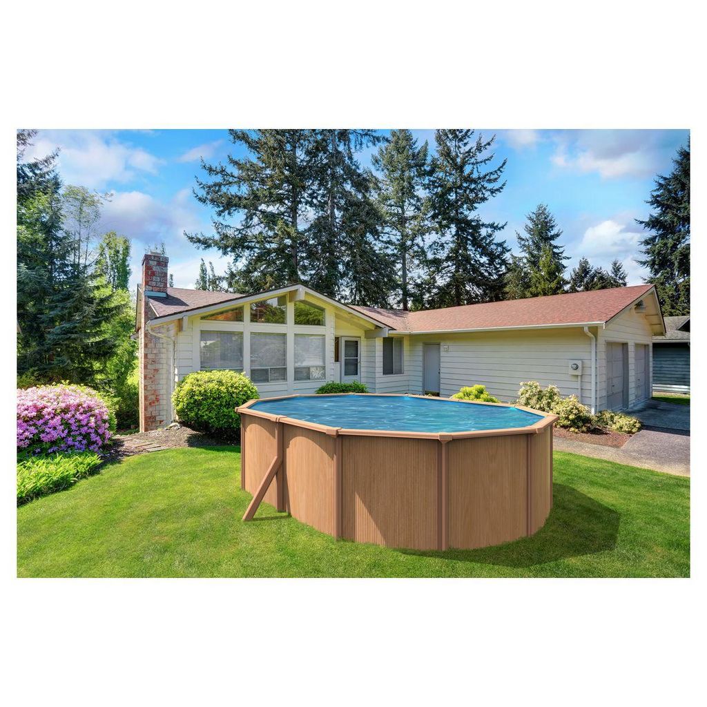 Piscine ovale hors sol en acier aspect bois 5,10x3,90 m CANYON