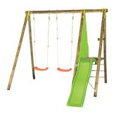 Portique bois avec 2 balançoires + 1 plateforme avec toboggan - j-16597p4
