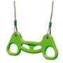 Trapèze anneaux pour portique 1,90/2,50m. Plastique soufflé de coloris vert. Anneaux de diamètre extérieur 13cm. Cordes en polypropylène réglables couleur chanvre et traitées anti-UV. Huit de réglage métal (x2)