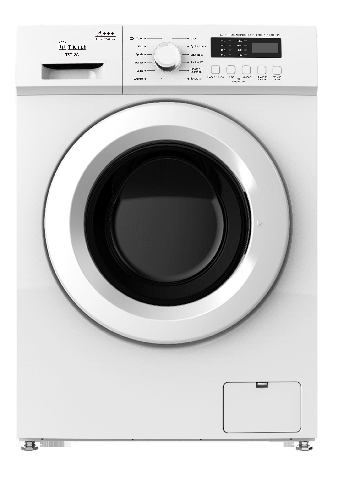 Lave linge hublot TS712W, 7 Kg, 1200 T/min