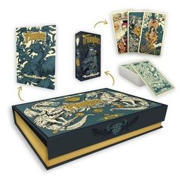 Le tarot illustré par les plus grands noms de la bande dessinée ! Le tarot, qui tire son origine des Triomphes de Pétrarque, a traversé bien des époques. A la fois jeu de carte et art divinatoire, il offre de multiples possibilités et continue de nous intriguer ! C'est pourquoi les éditions Glénat en proposent une version d'exception, sublimée par le talent des plus grands noms de la bande dessinée : 38 cartes - atouts et habillés - illustrées par 38 auteurs phares de la bande dessinée, toutes générations confondues. Par le biais de ces somptueuses illustrations, redécouvrez le mystère et le pouvoir du tarot et de ses différents arcanes majeurs et mineurs, ou jouez des parties endiablées ! Car en plus du jeu complet, cet écrin unique en son genre s'accompagne d'un livret détaillé sur les règles du tarot, ses origines et les explications sur le sens symbolique des différents arcanes et enseignes traditionnelles (coupes, épées, bâtons et deniers), conçues pour l'occasion par Stan Manoukian. Plus qu'un jeu de cartes, un cadeau idéal pour les passionnés de bande dessinée et les novices en divination, qui pourront s'initier en tirant les cartes... et qui sait ce que l'avenir vous réserve ?