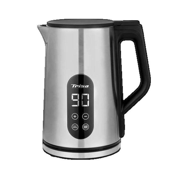 Découvrez la Bouilloire Élégante de la marque Trisa conçue en acier inoxydable à double paroi pour plus de sécurité et d'efficacité. Cette bouilloire électrique dispose d'une capacité de 1,7 litre, idéale pour préparer vos boissons chaudes. Son écran permet d'afficher des températures de 40 à 100 °C