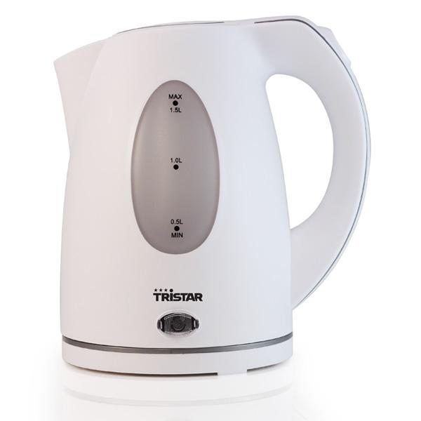 Tristar WK1324 - Puissance : 2000 WVolume : 1,5 LCorps en plastiqueKetsolRotation 360°Elément de chauffage intégréBouton on/offCarafe amovibleIndicateur de niveau d'eauCorps résistant à la chaleurCouvercle avec verrouArrêt automatique dès que la température est atteinteCouleur : Blanc