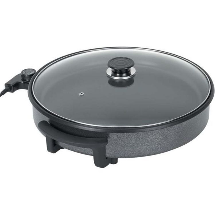 Tristar PZ2964 Avec cette poêle multifonction, vous pourrez absolument tout mijoter, des pommes de terre au poissons ! Vous deviendrez un véritable cordon-bleu ! Le diamètre de la poêle est de 40 cm. - Puissance: 1500 WVoltage: 230 VDiamètre de surface de cuisson 40 cmThermostat sur le cordon amovib