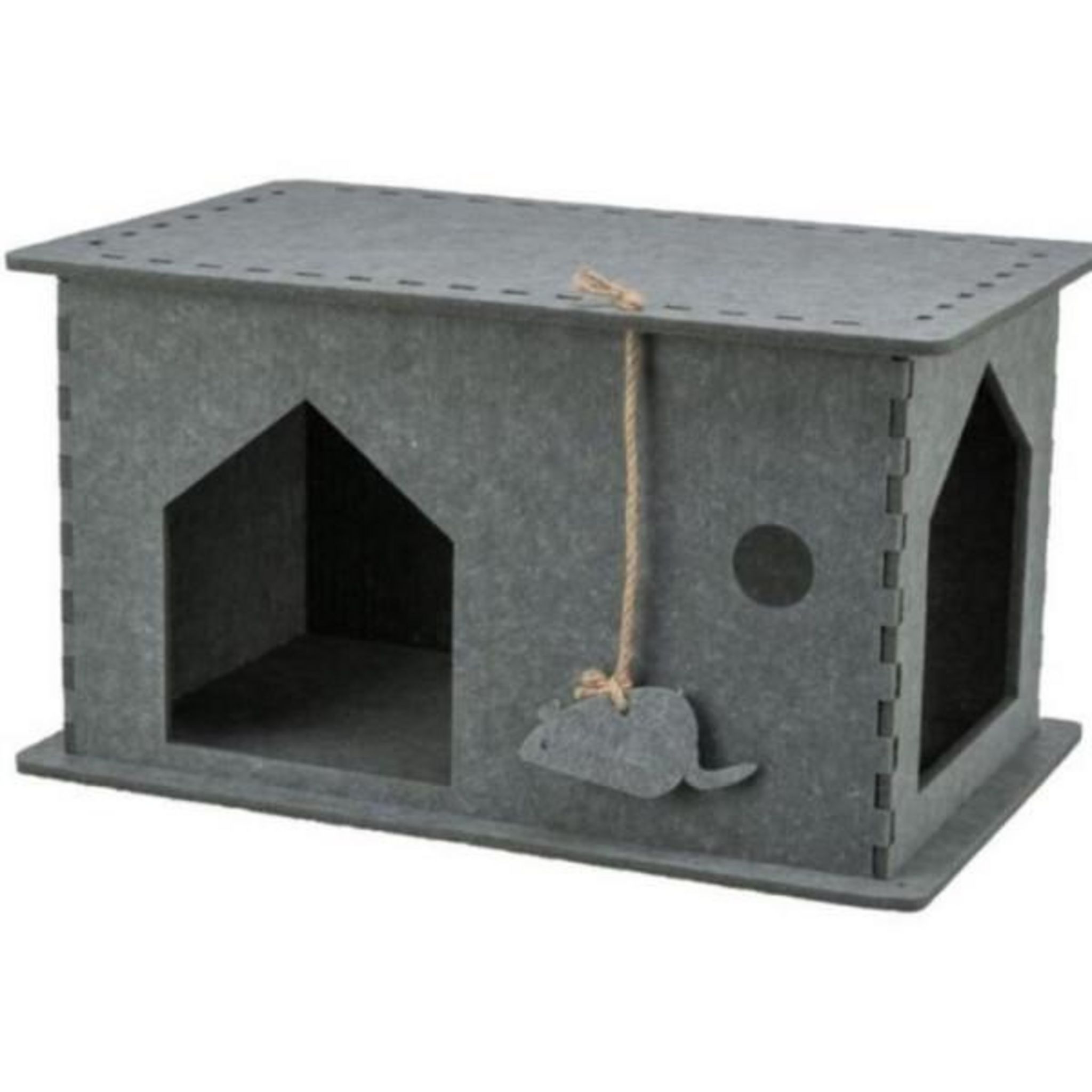 L'abri TRIXIE Lene en feutre est idéal pour les chats. Avec ses dimensions de 54 x 30 x 35 cm, il offre une structure stable et deux ouvertures pour un acces facile. Facile a assembler, il comprend également un jouet suspendu pour divertir votre animal.