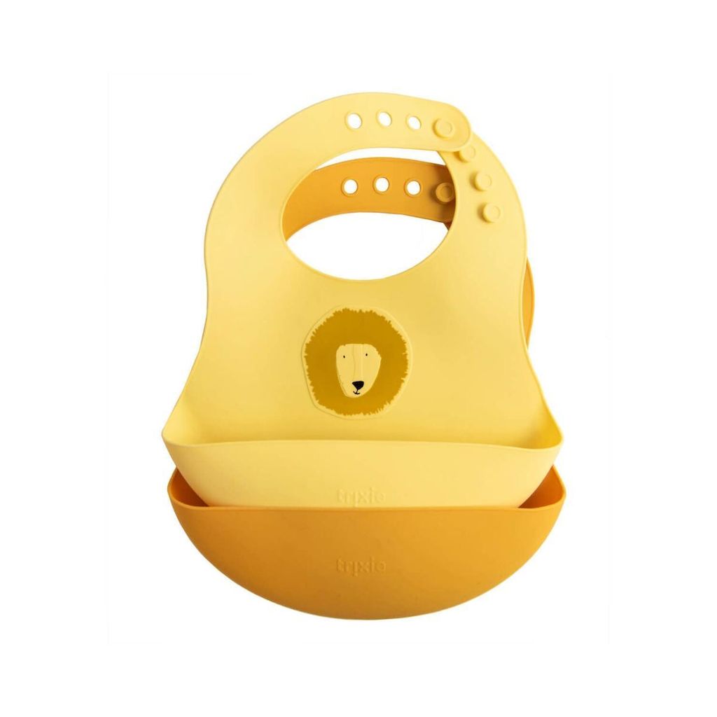 Gardez les repas propres et stylés avec ce bavoir en silicone Monsieur Lion de Trixie ! Souple, léger et imperméable, il est doté d'une grande poche récupératrice pour attraper miettes et éclaboussures. Facile à ajuster grâce à son système de fermeture à pression, il assure un confort optimal à bébé