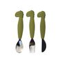 Grâce à ces amis animaux joyeux, il n'a jamais été aussi chouette de découvrir de nouvelles saveurs. Notre ensemble de couverts (fourchette, cuillère et couteau) a été spécialement conçu pour les petits convives. Dotés de manches en silicone doux et antidérapant parfaitement adaptés aux petites mains, ces couverts encouragent votre enfant à manger seul. Manche 100% silicone - 100% acier inoxydable Dimensions (L x L x H) 15,5x3x1,5
