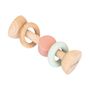 Hochet en silicone et bois , facile à attraper pour les petites mains.