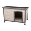Découvrez la niche pour chiens Natura Classic a toit plat, idéale pour les chiens de taille moyenne. Fabriquée en pin verni et carton bitumé, cette niche est conçue pour une utilisation en extérieur. Ses dimensions sont de 104 × 72 × 68 cm. Disponible en couleur gris.