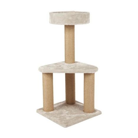 Arbre a chat Ivan - En bois recouvert de peluche - Poteaux habillés de jute - Hauteur : 82 cm - Emprise au sol : 39x39 cm - Poteau : ø 9 cm - Coloris : gris clair.