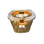 Ingrédients : Olive verte cassée 78% origine UE (Grèce)/non UE (Egypte - Maroc- Turquie) selon approvisionnements, sel, ail 3,3% (gousse confite et haché réhydraté) origine non UE , oignon confit, huile de colza, piment coupé confit, persil déshydraté, acidifiants (E330, vinaigre)