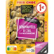 Olives vertes dénoyautées à l'ail doux à la méditerranéenne