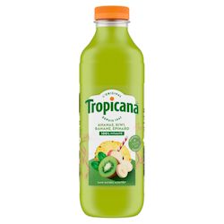 Jus de pomme à base de concentré (49%), eau, purée de banane (10%), purée de kiwi (8%), jus d'ananas (8%), purée de pomme (6%), purée d'épinard (1%), lactate de magnésium, spiruline, extrait de carthame, vitamine C, arôme naturel.
