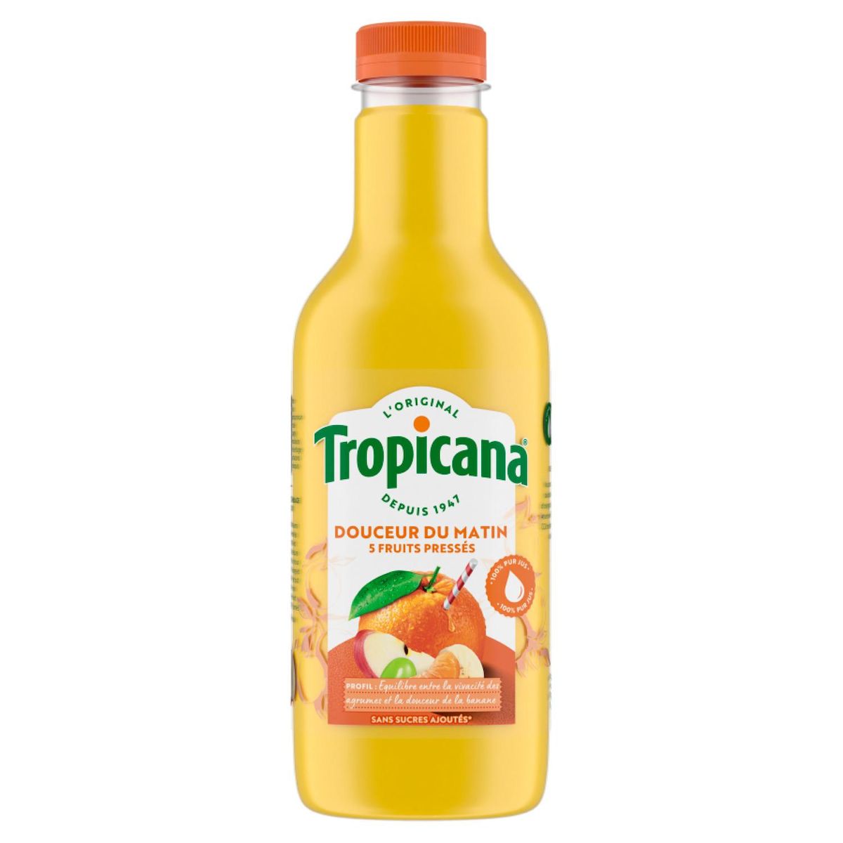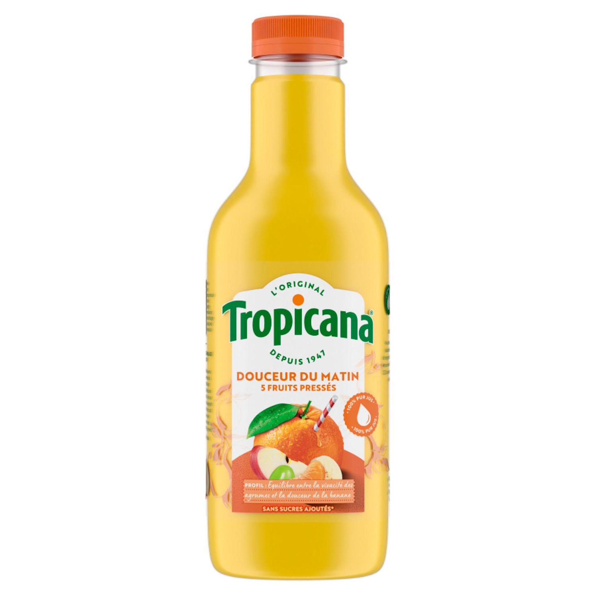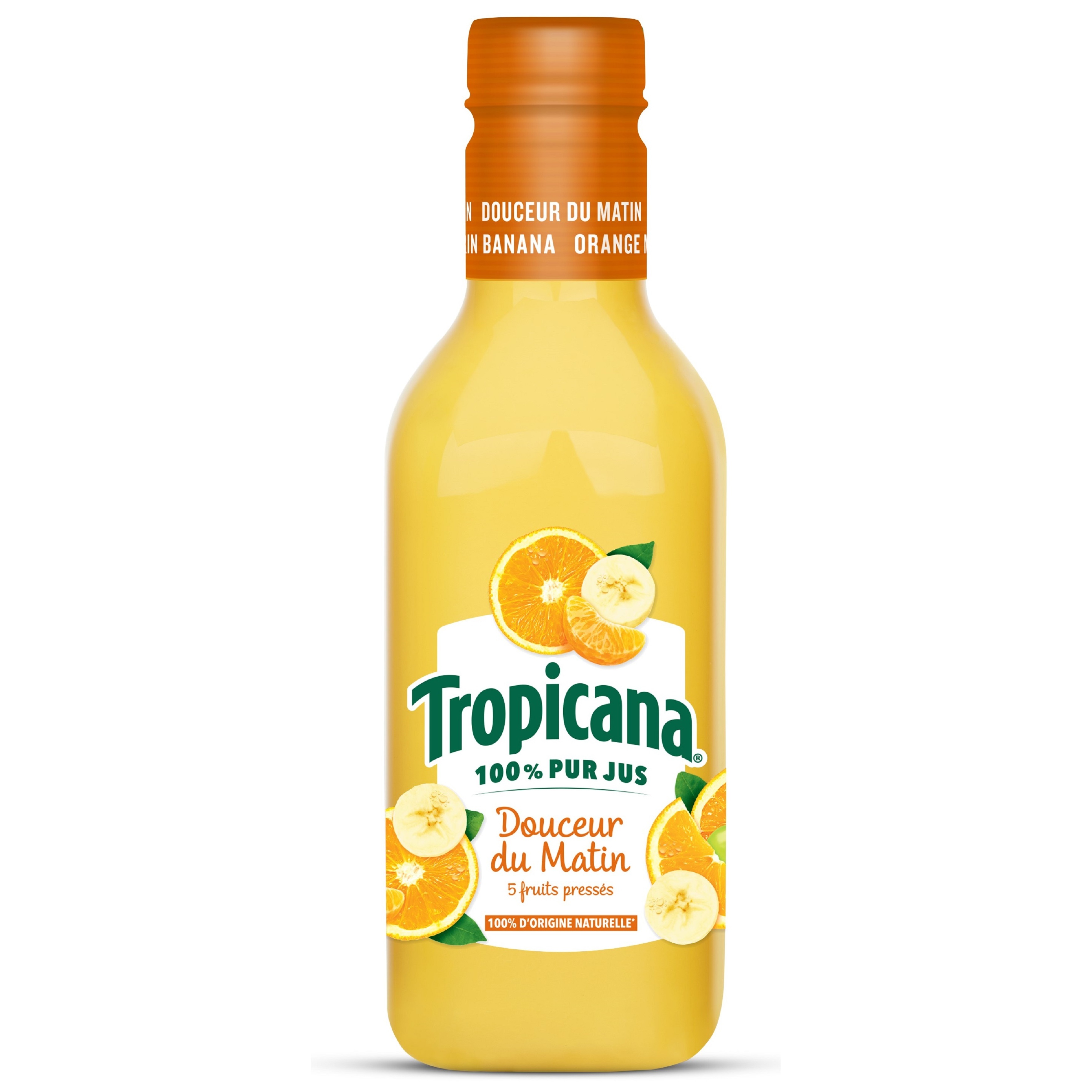 jus d'orange (40%), jus de mandarine (26%), jus de pomme, jus de raisin, purée de banane (4,2%)