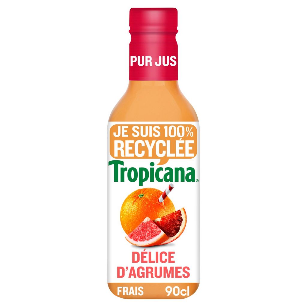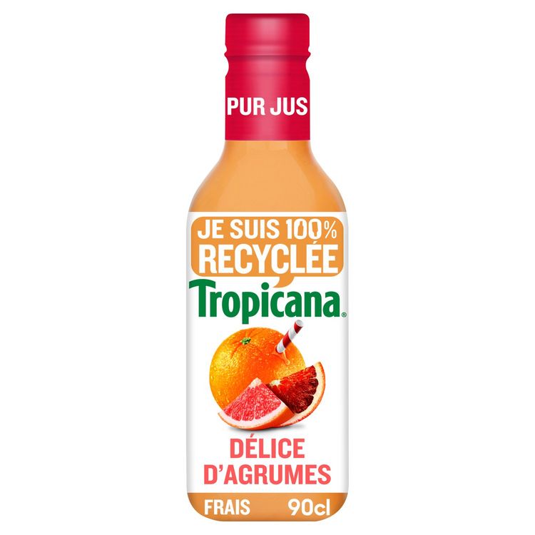 Jus de 4 fruits. Tropicana® - S'engage - 100% pur jus de fruits pressés, sans sucres ajoutés° °Sans sucres ajoutés. Comme tous les jus de fruits. Contient les sucres naturellement présents dans les fruits.