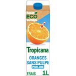 Jus d'orange. Une sélection d'oranges du Brésil gorgées de soleil, récoltées à maturité et pressées dès le lendemain de la cueillette, pour un goût délicieux et intense. 100% fruits pressés et sans sucres ajoutés° °Comme tous les jus de fruits. Contient les sucres naturellement présents dans les fruits. Tropicana Pure Premium C'est en Floride dans les années 50 qu'Anthony Rossi, inspiré par le climat tropical propice à la culture d'agrumes et par le prénom de son épouse Sanna, crée la marque Tropicana. Sa passion pour le fruit et son exigence sont l'héritage que Tropicana perpétue aujourd'hui pour vous offrir un jus d'orange de qualité. S'engage Nous réduisons notre impact sur l'environnement avec des emballages conçus de manière plus responsable, et nous soutenons une agriculture responsable, respectueuse de la nature et des hommes. Pack Eco conçu Matières végétales Notre brique est fabriquée à partir de matières d'origine végétale (bois et canne à sucre). Carton allégé Notre brique diminue son impact environnemental: moins de ressources utilisées et donc moins d'émissions de CO2 (-17%⁽²⁾). ²vs notre ancienne brique Tropicana. Recyclable La brique et son bouchon sont à trier pour être recyclés. Carton labellisé FSC Notre carton est issu de forêts gérées durablement. Approvisionnement responsable Ce Carton Pure-Pak : Est issu de forêts gérées de façon responsable Approvisionnement d'oranges¹ ¹Tropicana achète une quantité d'oranges vérifiées Rainforest Alliance équivalente à celle nécessaire à fabriquer ce produit. Ce volume est susceptible d'être utilisé dans d'autres produits. Pour en savoir plus : www.tropicana.fr/Nos-engagements