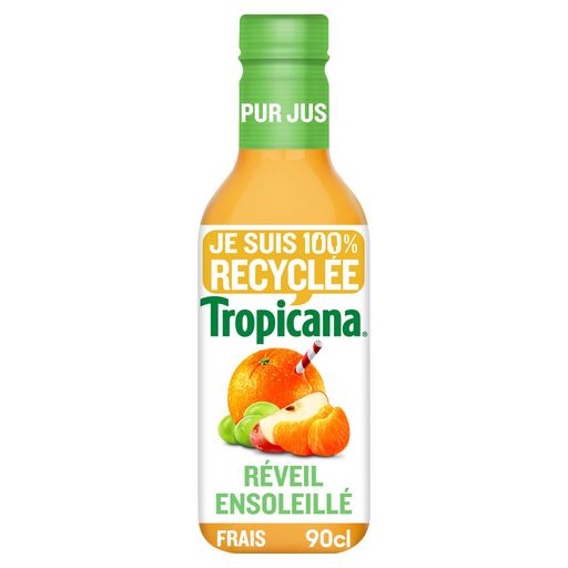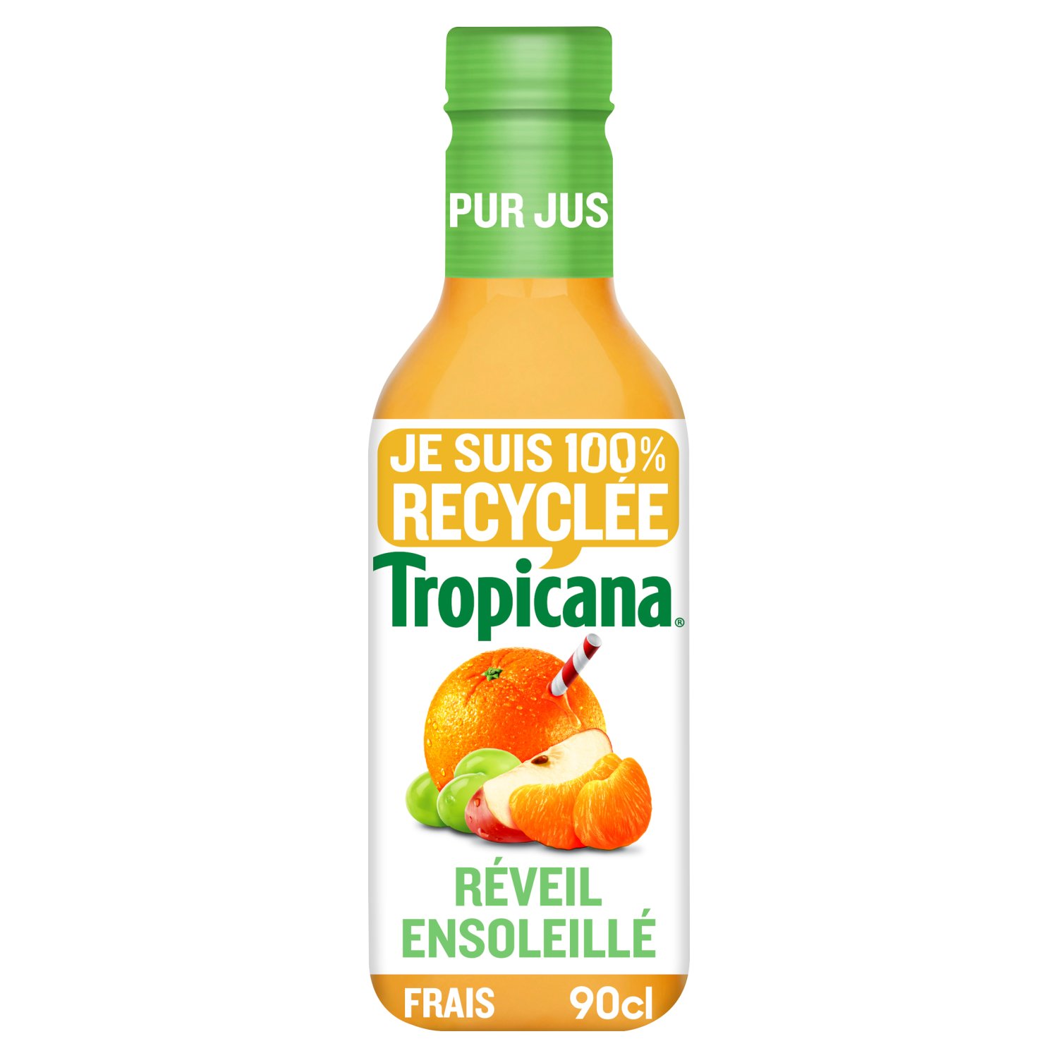 Jus de 4 fruits. Tropicana® - S'engage - 100% pur jus de fruits pressés, sans sucres ajoutés° °Sans sucres ajoutés. Comme tous les jus de fruits. Contient les sucres naturellement présents dans les fruits.