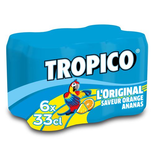 Tropico l'Original saveur orange ananas 6 x 330 ml Boisson rafraîchissante aux jus de fruits, saveur orange ananas, sans bulles.