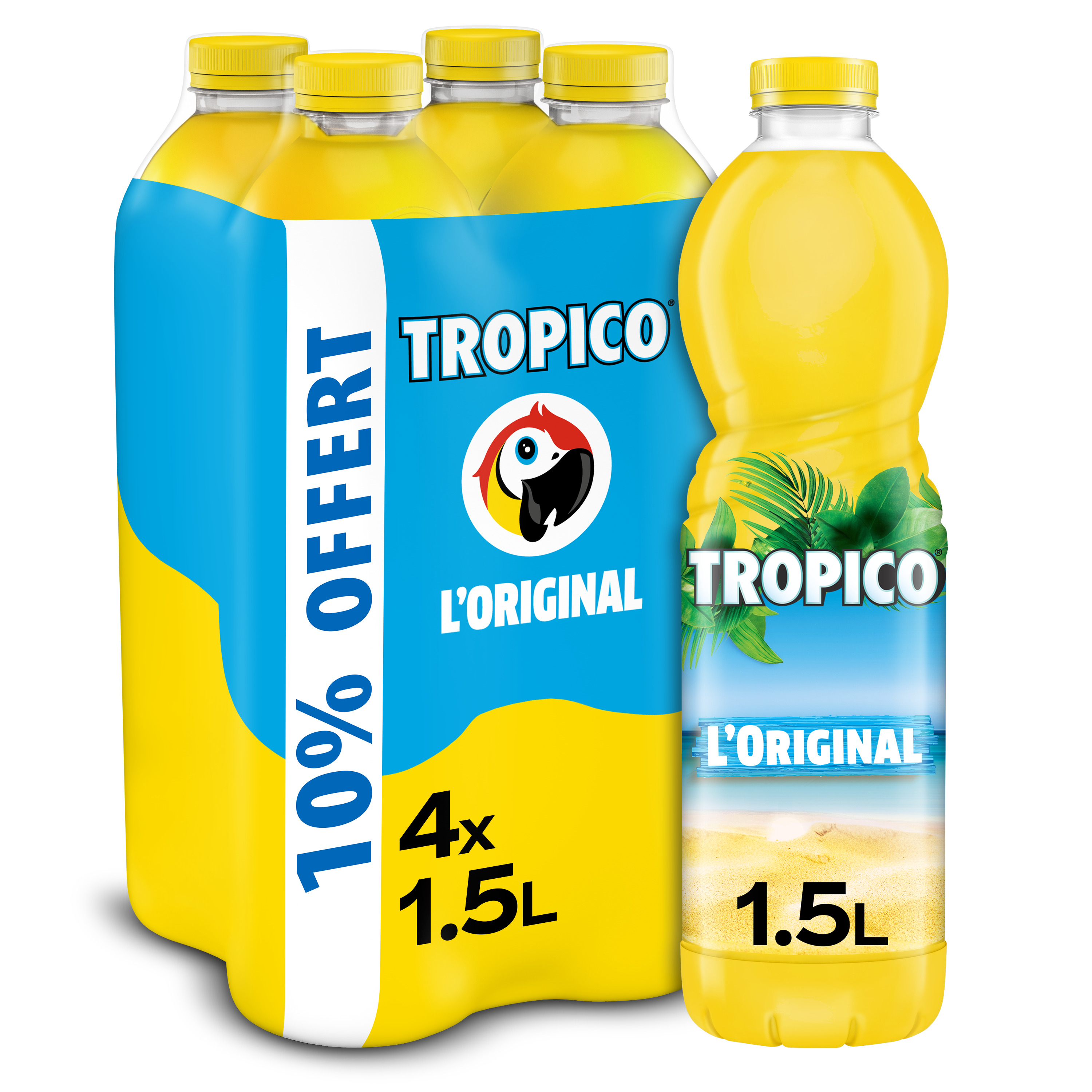 Tropico l'Original saveur orange ananas 4 x 1,5 L 10% offert Boisson rafraîchissante aux fruits, saveur orange ananas, sans bulles.