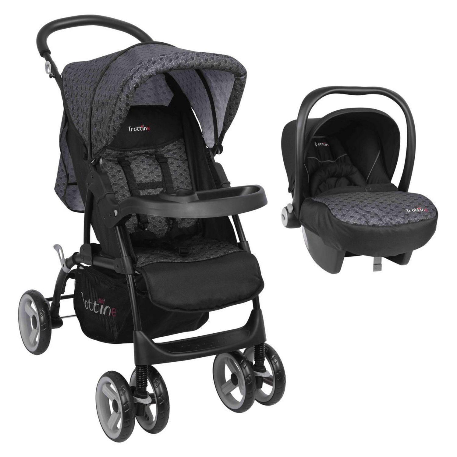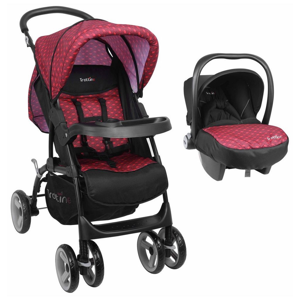 La marque Trottine vous propose cette poussette duo TS Cassiopé Nami pour vos enfants dès la naissance. Ce pack duo comprend une coque groupe 0 utilisable de la naissance à 18 kg qui se clipse et se déclipse très facilement sur la tablette de la poussette. La poussette Cassiopé Nami est équipée d'un dossier inclinable confortable pour votre enfant ainsi que d'un repose pieds réglable. Vous disposerez d'un grand panier de rangement pratique pour emmener toutes les affaires de bébé ou pour les courses. La poussette duo TS Cassiopé Nami de Trottine est vendue avec habillage pluie ainsi que 2 tablier (un pour la poussette et un pour la coque groupe 0). Elle existe en coloris gris ou rouge.