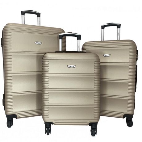 Référence : TR10583matière : ABSpoids Colis (kg) : 10.05poids (kg) : 9.25Composition du lot :TR10581P Valise Cabine :- dimensions (cm) : L 40 x H 54 x P 20- volume (litre) : 36.5- poids Colis (kg) : 2.400Valise Taille Moyenne TR10581M :- dimensions (cm) : L 44 x H 65 x P 26- volume (litre) : 63.5- p