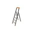Ce marchepied KOLOS de la marque Tubesca-Comabi dispose de marches serties antidérapantes en aluminium extrudé, de montants en peinture époxy et de sabots enveloppants antidérapants avec témoin d'usure. Il est également doté d'articulations monobloc en fonderie d'aluminium, nervurées, ultra-résistantes. Le porte-outils intégré avec fermeture permet de toujours avoir à portée de main les outils nécessaires. En outre, les modèles 7 et 8 marches sont dotés de 2 sangles noires.