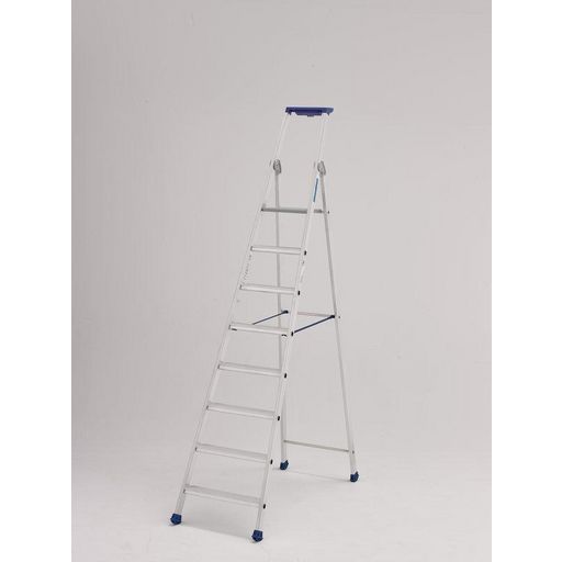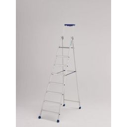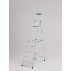 Caractéristiques techniques :Porte-outils avec crochet porte-seau intégré et logement pour perçeuse.Articulations monobloc en fonderie d'alu, nervurées, ultra-résistantes.Repose-pieds en aluminium injecté moulé résistant aux efforts intensifs.La liaison marches / montants sertie est très fiable et r