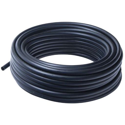 Tuyau plymouth alimentaire 16 bars Ø25mm de la marque Rain. Tube semi-rigide de couleur noire avec un repérage spécifique bandes bleues. Résistance aux chocs et aux UV. Insensibilité à la corrosion. Respect de la saveur neutre de leau. Produit disponible