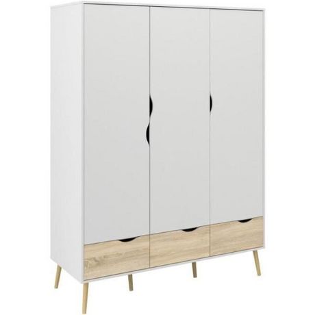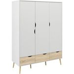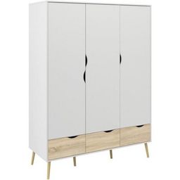 Armoire - Blanc / Chene - 3 portes / 3 tiroirs - Pietement évasé en bois massif - Chambre - 147,2 x 58,1 x 200,1 cm ARO