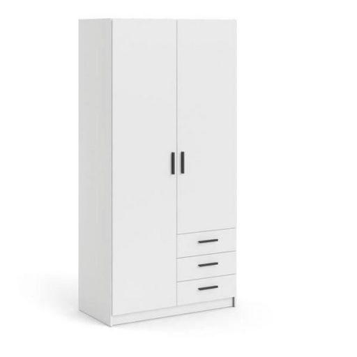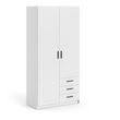 Armoire VEGA - Décor Blanc mat - 2 portes + 3 tiroirs - L 98,5 x P 49,6 x H 200,4 cm