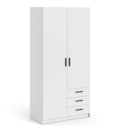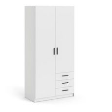 En panneaux de particules, Blanc mat, 2 portes, 3 tiroirs, L98,5xP49,6xH200,4cm