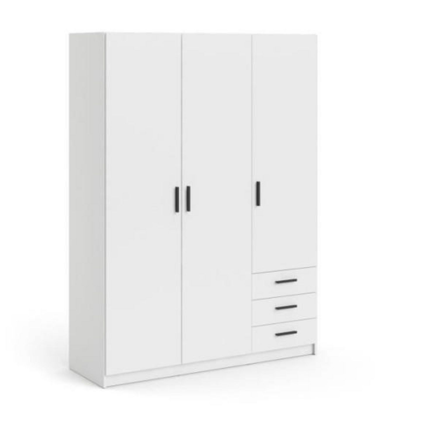 Armoire VEGA - Décor Blanc mat - 3 portes + 3 tiroirs - L 147 x P 49,6 x H 200,4 cm