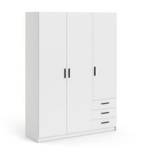 En panneaux de particules, Blanc mat, 3 portes et 3 tiroirs,- 147 x P 49,6 x H 200,4 cm