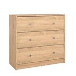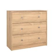 Cette commode Oregon est un meuble de chambre altique et intemporel. Avec ses 3 tiroirs, elle offre un espace de rangement pratique pour vos vetements et accessoires. Sa finition imitation chene lui donne un aspect bois chaleureux. Les dimensions de la commode sont de L 72 x P 30 x H 68 cm. Elle est