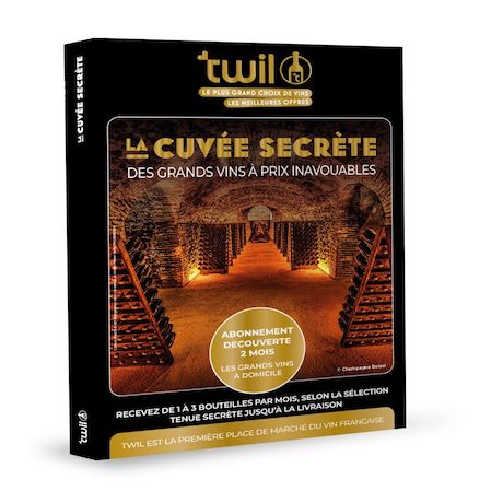 Offrez une expérience œnologique originale avec le coffret La Cuvée Secrète de Twil. Pendant 2 mois, recevez chaque mois une bouteille soigneusement sélectionnée par l'équipe d'experts Twil. et découvrez son identité seulement à la réception ! Un concept ludique qui transforme chaque livraison en un moment de curiosité et de plaisir partagé. Les vins sont directement choisis auprès des vignerons et reflètent la richesse des plus beaux terroirs de France. Rouges, blancs ou rosés, chaque cuvée est une véritable invitation à la découverte, sans a priori ni influence de l'étiquette. Valable toute l'année, ce coffret s'adresse aussi bien aux amateurs de vin qu'aux passionnés désireux d'élargir leurs horizons gustatifs. Un cadeau raffiné et surprenant, qui allie mystère, découverte et authenticité.
