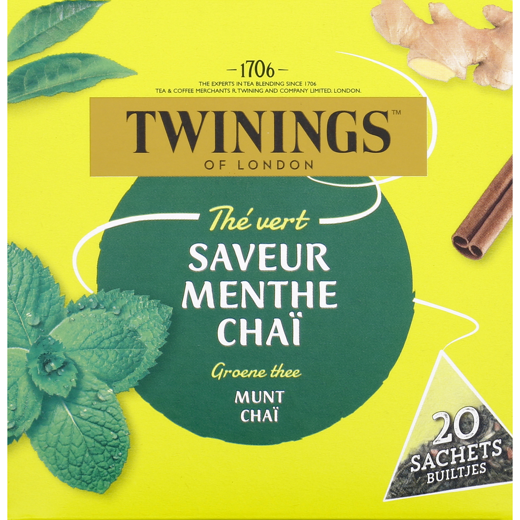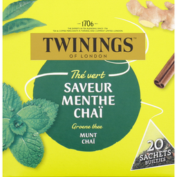 Ingrédients : thé vert (73%), menthe (10%), gingembre (5%), cannelle (5%), arôme naturel de menthe (4%), cardamone (3%).