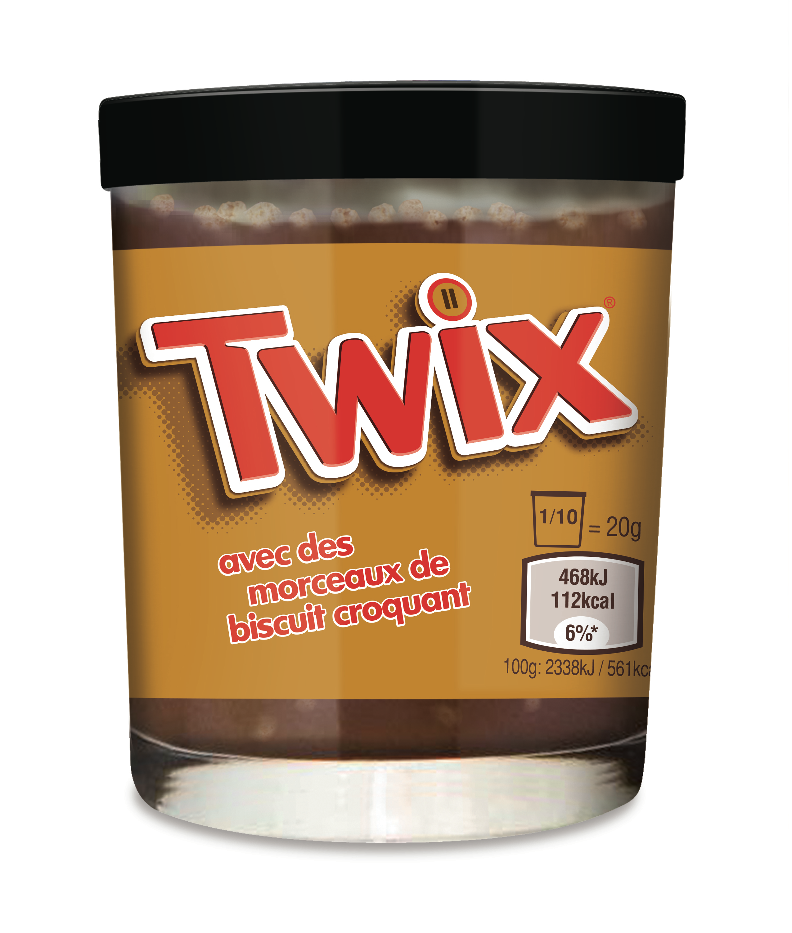 onctueuse pâte à tartiner au chocolat et caramel avec inclusions de biscuit Pâte à tartiner au cacao maigre, goût caramel et avec morceaux de biscuit