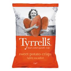 Découvrez la nouvelle gamme de chips de patates douces légèrement salées au sel de mer, dans un packaging délicieusement rétro Chips de patate douce légèrement salées au sel de mer 125g