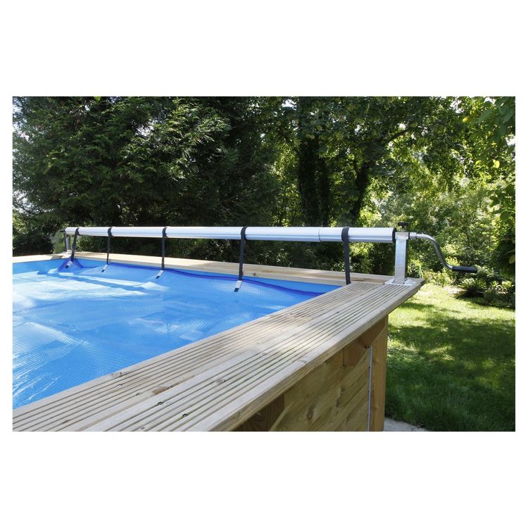 Enrouleur bâche à bulles PREMIUM - amovible (L max. 5,50m) - armature aluminium (5 tubes x 1,50m, emboîtables) inclus sangles de fixations - pour piscines bois, acier et béton / à coque