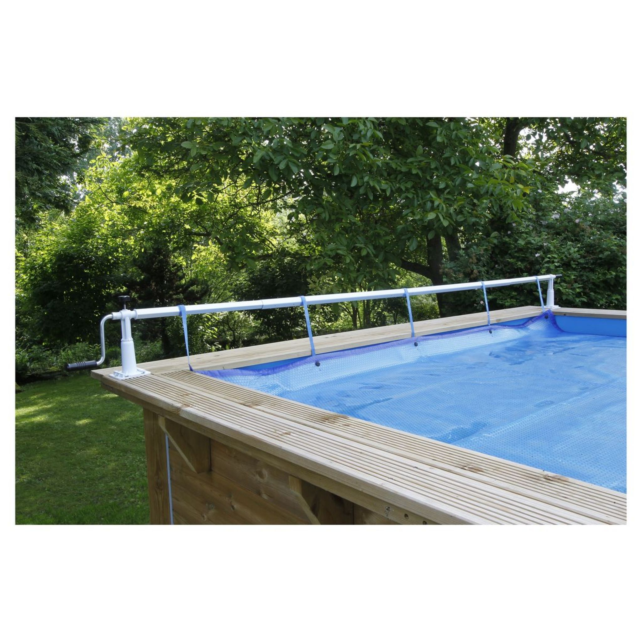 Enrouleur bâche à bulles XTRA - amovible (L max. 5,50m) - armature plastique (7 tubes x 1,05m, emboîtables) inclus sangles de fixations - pour piscines bois, tubulaires et acier