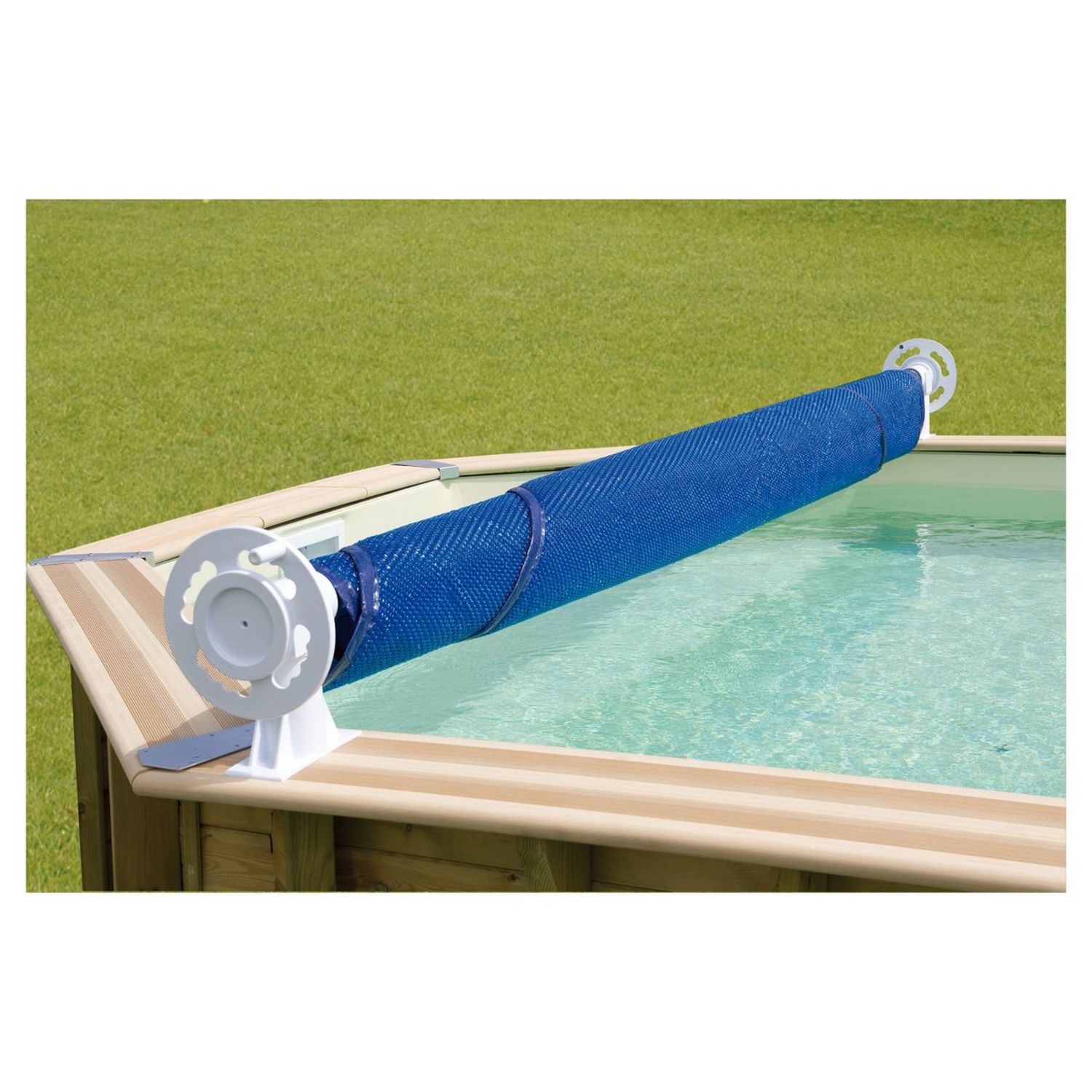 Enrouleur bâche à bulles LUXE - (L max. 6,50m) - armature plastique (3 manchons : 2 x 2.44 m-Ø 76mm/1 x 2,44 m - Ø 80mm, emboîtables) inclus sangles de fixation - pour piscines bois et béton / à coque