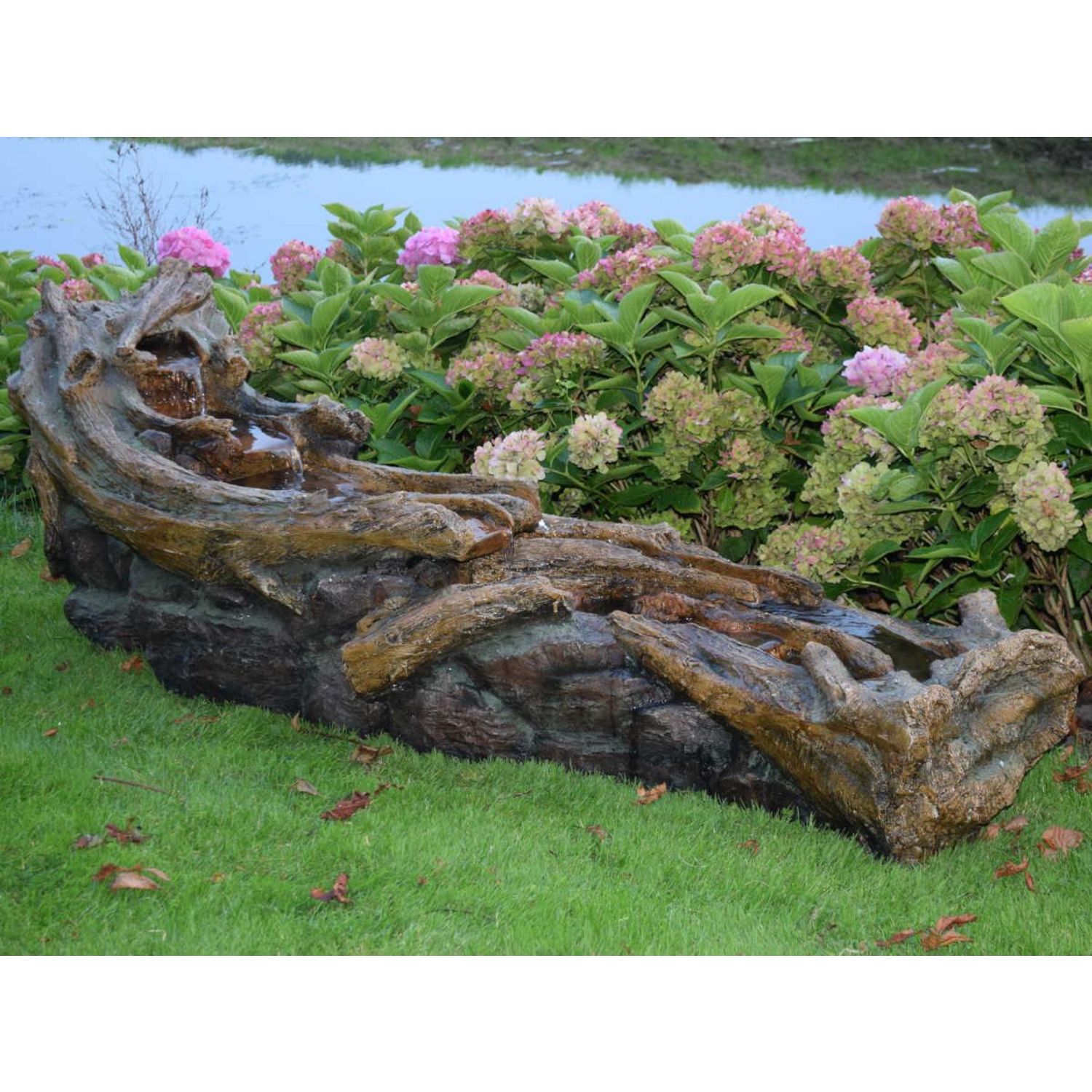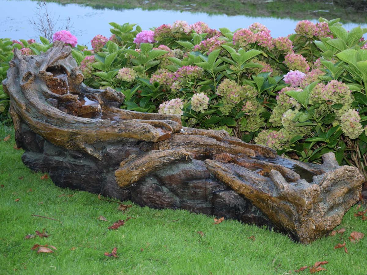 Fontaine de jardin allongée Avisio souche d'arbre avec chute d'eau et éclairage LED - Ubbink