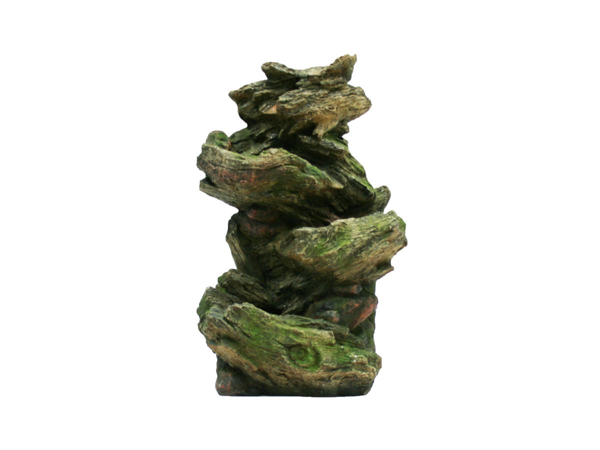 Fontaine / jeu d'eau pour le jardin. En polyrésine effet bois flotté. Crée une cascade décorative. Pompe et raccord fournis. Dimensions 78 x 59 x 36 cm.