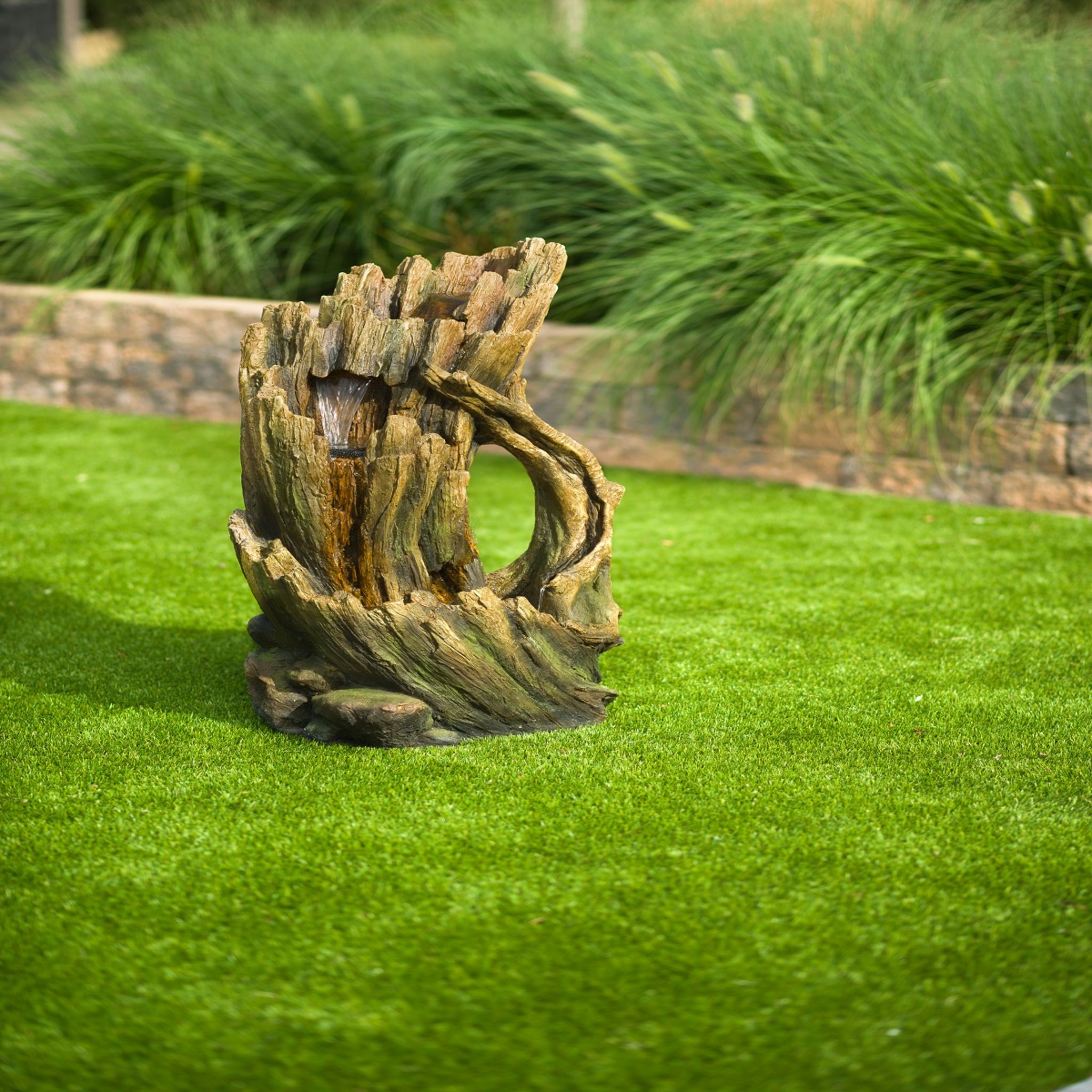 Reproduction d’un vieux tronc d’arbre avec cascade intégrée et éclairage 4x1 LED à différents endroits. Matériau léger et résistant au temps, d’une installation facile muni de son propre réservoir d’eau et livré avec une pompe 900 l/h de grande capacité pour un jeu d’eau puissant. - Matière : polyrésine H 78 x 51 x 36 cm