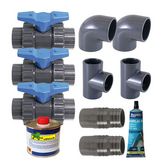 Kit BY-PASS Heatermax INVERTER - tuyauterie Ø38 et Ø50 mm, 2x coudes 90?, 2x té 90?, 3x vannes, 2x raccords cannelés 50 x 50/38 mm, colle 125 ml, décapant 500 ml